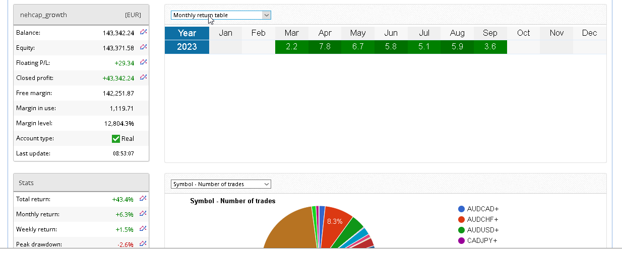 September returns have crossed +3% on our live account with dd under 1%.