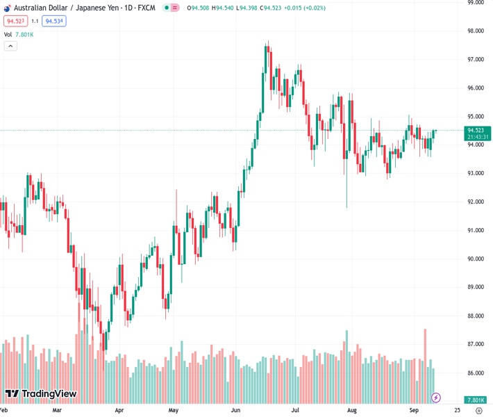 The AUDJPY cross-currency pair is currently trading at 94.5290 on the daily chart, showing a period of consolidation as buyers are targeting the 95.00 level.