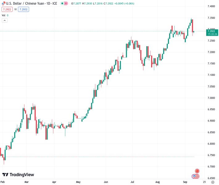 USD/CNY largely hovered below the 7.30 handle in the second half of August and broke through it in early September to reach 7.35 at one point. Economists at Commerzbank analyze the pair’s outlook.