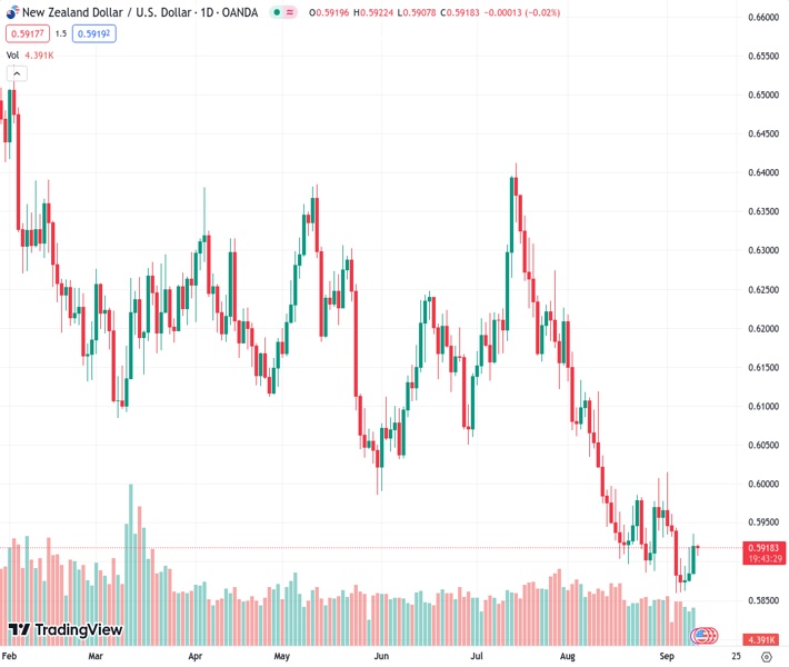 NZDUSD currently trading at 0.591 at the time of writing. Pair opened at 0.592 and is trading with a change of -0.17 % .