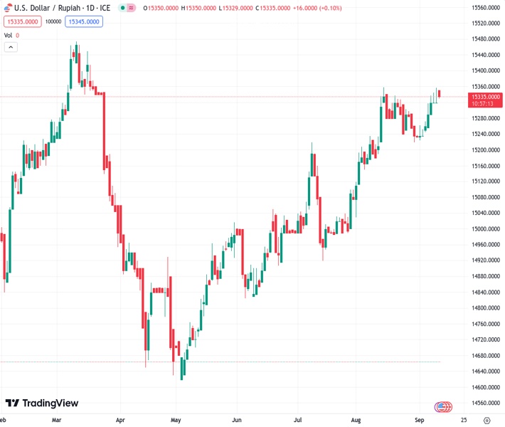 The USD to IDR exchange rate at 15,335.0 appears ready to increase in the near future, according to UOB.