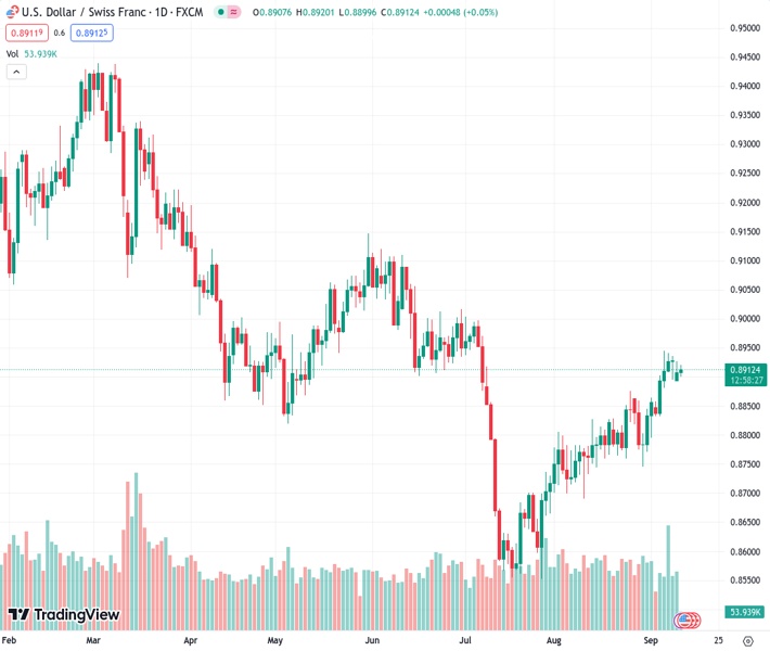 The USDCHF currency pair is currently trading at a higher level of approximately 0.8910, which is slightly above the 0.89095 level, due to the recovery of the US dollar.