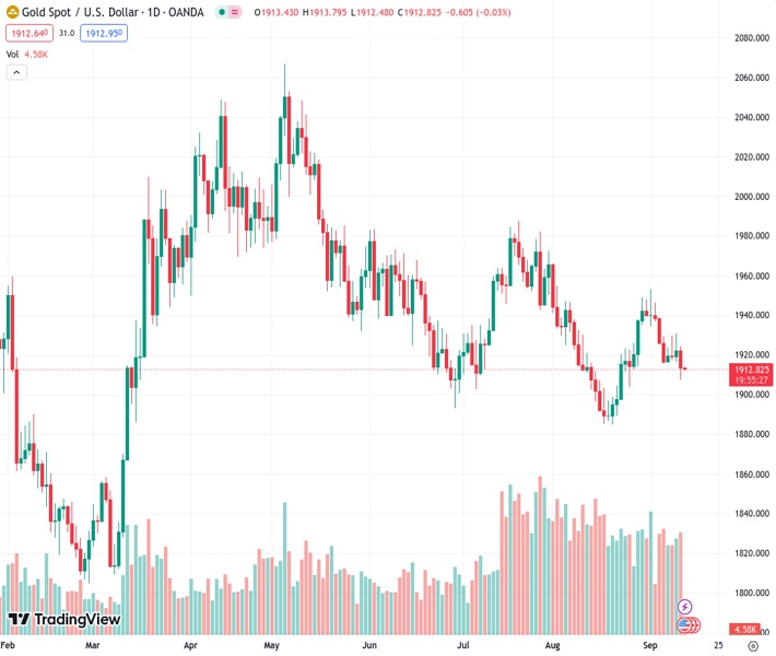 XAUUSD currently trading at 1912.96 at the time of writing. Pair opened at 1913.52 and is trading with a change of -0.03 % .