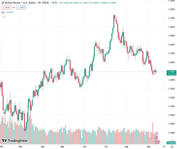 GBPUSD currently trading at 1.2498 at the time of writing. Pair opened at 1.249 and is trading with a change of 0.06 % .