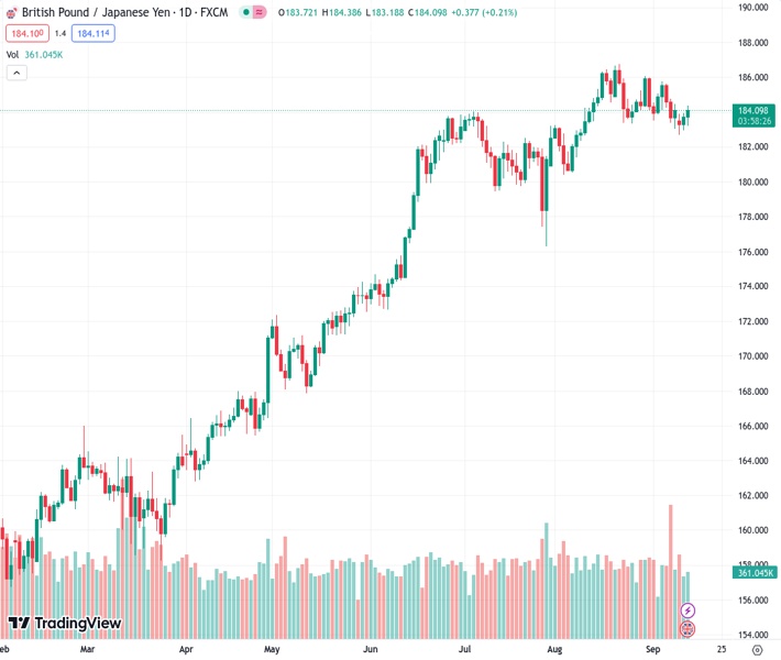 GBPJPY currently trading at 184.09 at the time of writing. Pair opened at 183.71 and is trading with a change of 0.21 % .