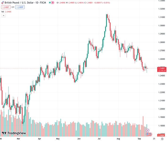 The GBPUSD currency pair maintained its stability at 1.2485 on Wednesday, with a rate of 1.24878.