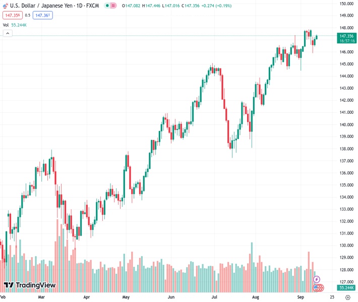 USDJPY currently trading at 147.35 at the time of writing. Pair opened at 147.08 and is trading with a change of 0.18 % .