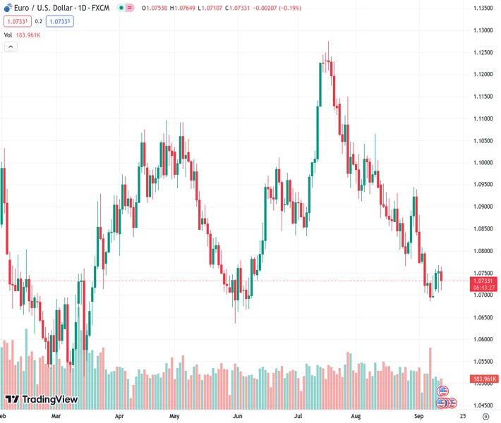 Three days of consecutive increases in the EUR/USD exchange rate have come to a stop at the price of 1.07333.