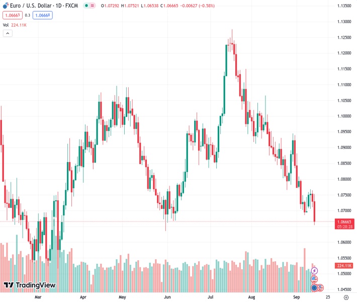 Danske predicts that the EURUSD exchange rate, currently at 1.06669, will likely decrease to a range of 1.06 to 1.03 within the next 6 to 12 months.
