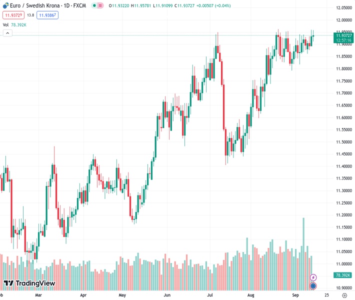 It is highly possible that the EURSEK exchange rate, currently at 11.9361, could reach 12.00 before the Riksbank meeting, according to ING.