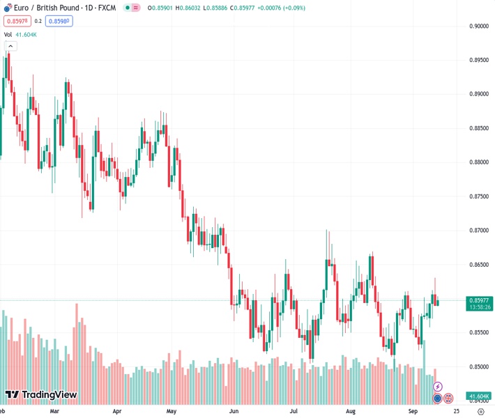Société Générale predicts that if the European Central Bank (ECB) decides to increase interest rates, the EURGBP currency pair could rise from its current level of 0.85986 to reach a target of 0.8630.