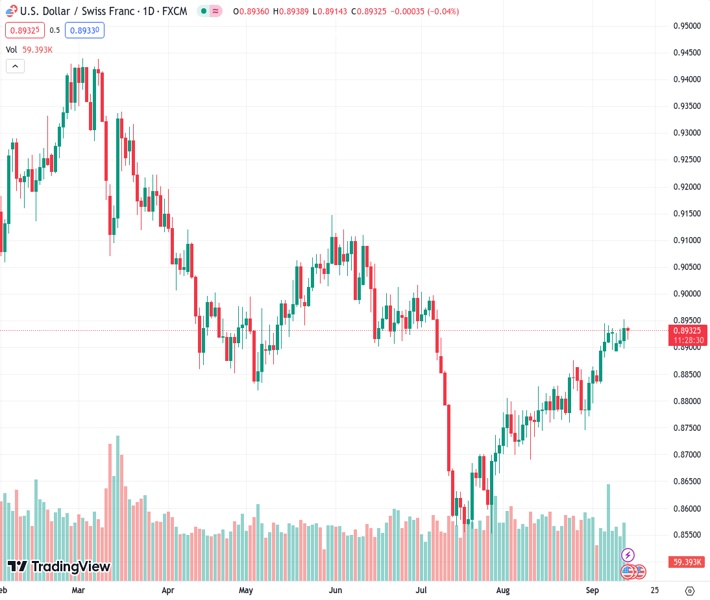 USDCHF currently trading at 0.8931 at the time of writing. Pair opened at 0.8937 and is trading with a change of -0.07 % .