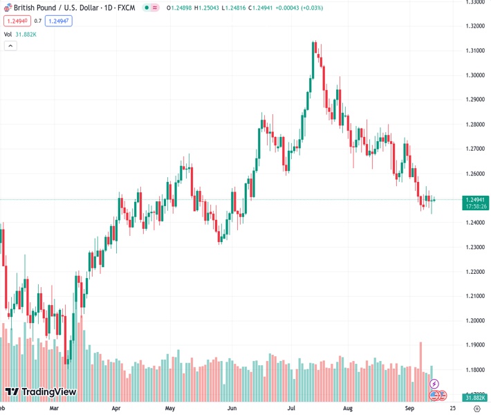 The GBPUSD pair is trading within a close range of 1.2485-1.2505, with minimal fluctuations.