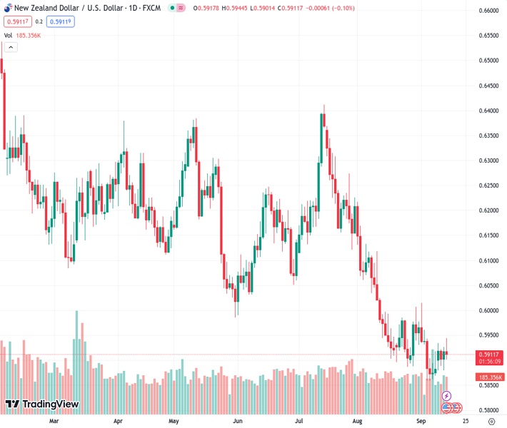 The New Zealand dollar against the US dollar is at 0.59101. In August, retail sales in the US increased by 2.6% compared to the same period last year. While this figure fell short of expectations, it suggests that consumer spending remains strong.