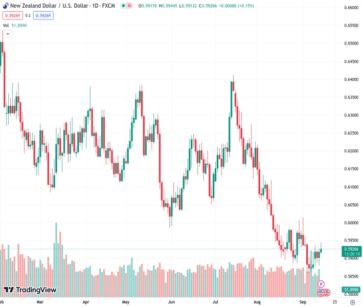 UOB predicts that the NZDUSD currency pair, currently trading at 0.59251, will experience a narrower trading range in the near future.
