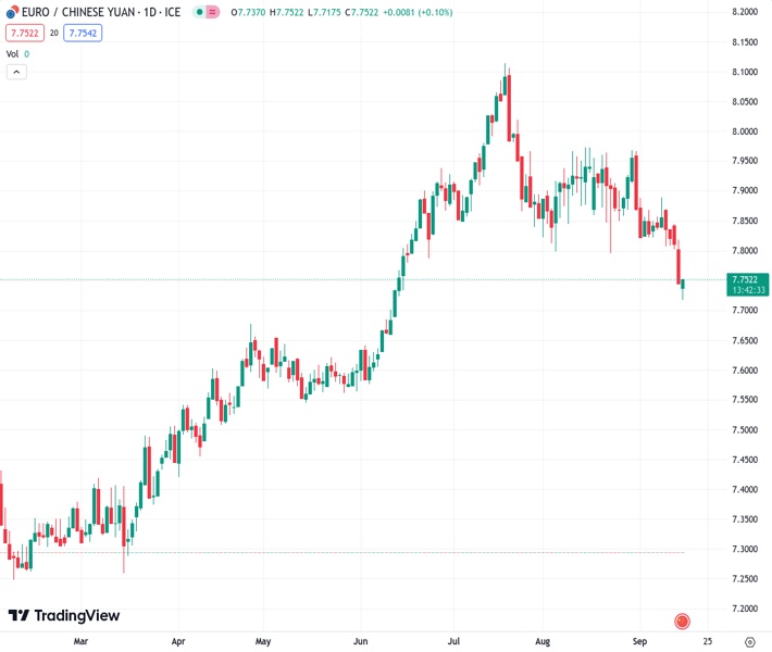 EUR/CNY plummeted below 7.75 following the ECB meeting, meaning it has lost almost 5% from the high this summer. Economists at Société Générale analyze the pair’s technical outlook.