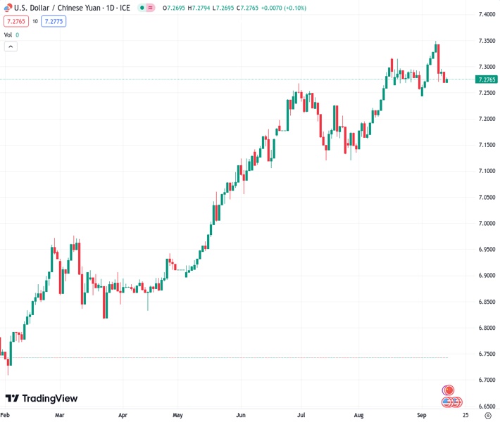 The exchange rate between the US Dollar and the Chinese Yuan is currently at 7.28850. The People’s Bank of China has set the reference rate at 7.1786, which is slightly lower than the previous rate of 7.1874.