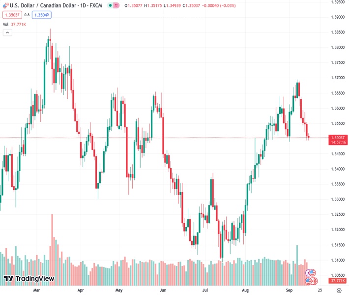 The USDCAD pair at an exchange rate of 1.35006 has enticed a group of sellers, causing it to remain in a decline for the sixth day in a row on Friday.