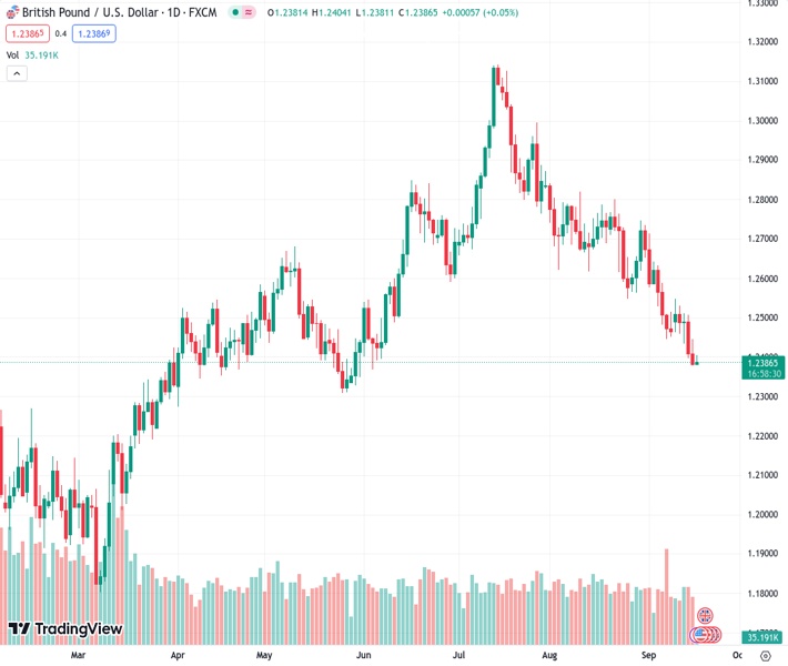 The GBP/USD pair remains on the defensive below the 1.2400 mark during the early Asian trading hours on Monday. The major pair currently trades near 1.2390, up 0.06% on the day. Market players prefer to wait on the sidelines ahead of the key event from this week. On Wednesday, the Federal Reserve (Fed) interest rate decision and the UK Consumer Price Index for August will be due. These events could trigger the volatility in the pair.