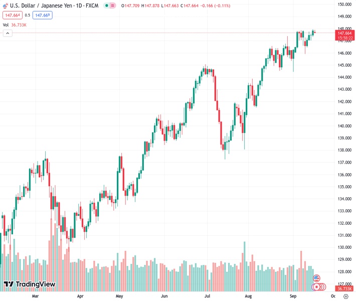 USDJPY currently trading at 147.69 at the time of writing. Pair opened at 147.85 and is trading with a change of -0.11 % .