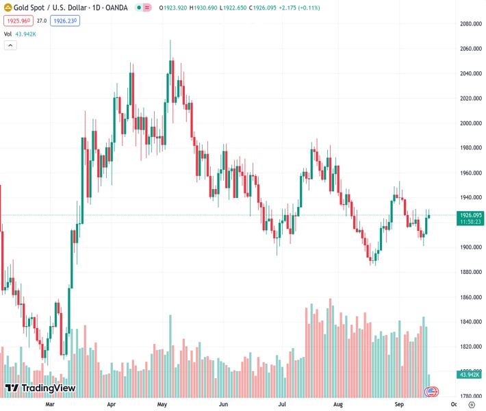 The price of gold, currently at 1,926.03 in the XAUUSD market, has fallen from its one-week high reached earlier this week. However, the decline has not been sustained.