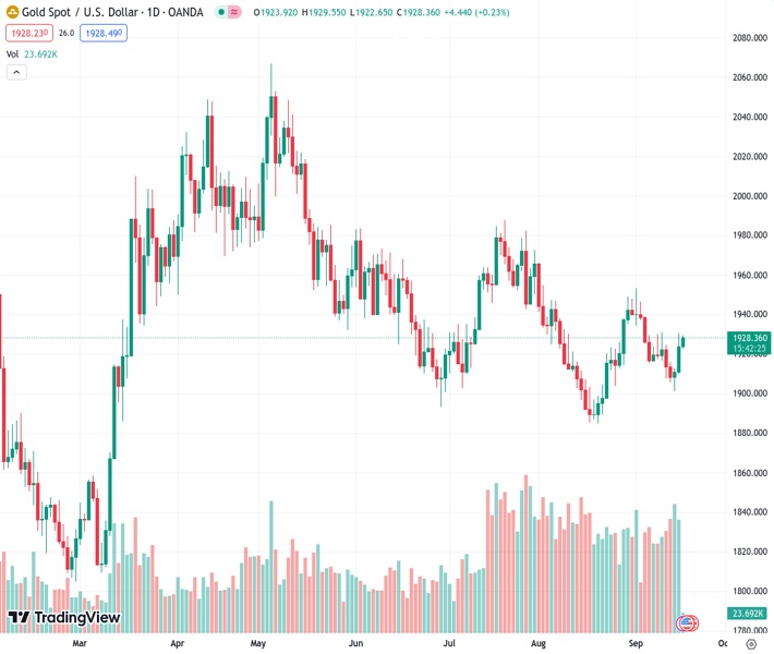 XAUUSD currently trading at 1928.24 at the time of writing. Pair opened at 1924.0 and is trading with a change of 0.22 % .