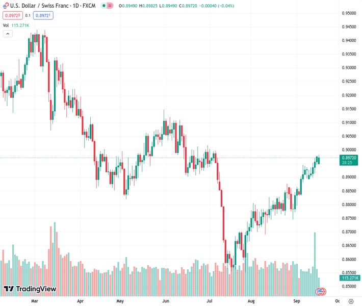 - USD/CHF trades at 0.8977, a marginal gain of 0.01%, as investors await the Federal Reserve’s policy decision and updated economic projections.