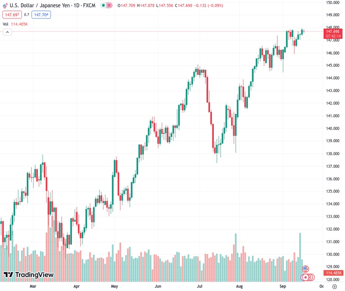 The USDJPY currency pair, currently at a rate of 147.696, is gradually approaching 150 and this could potentially lead to increased government intervention to help strengthen the Yen, according to MUFG.