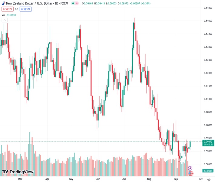 The NZD/USD pair has oscillated in a narrow range of 0.5900-0.5940 for the past four trading sessions. The Kiwi asset struggles to find as investors await the interest rate decision by the Federal Reserve (Fed), which will be announced on Wednesday.