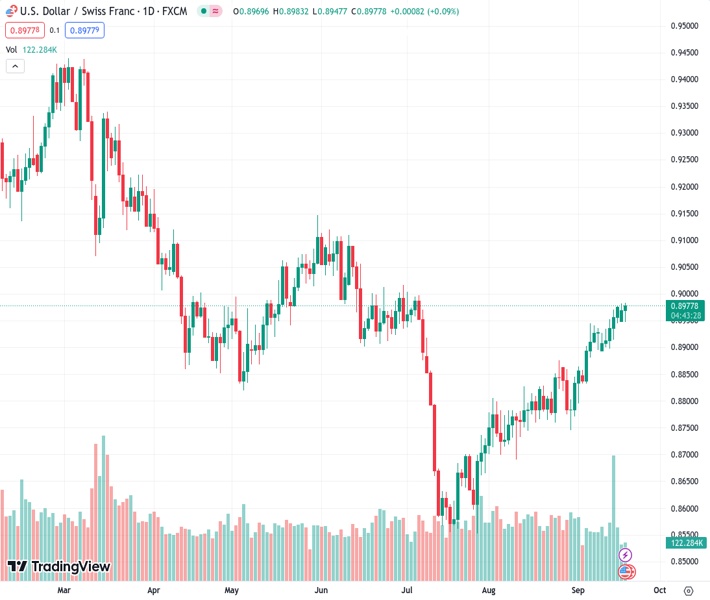 USDCHF currently trading at 0.8979 at the time of writing. Pair opened at 0.897 and is trading with a change of 0.1 % .