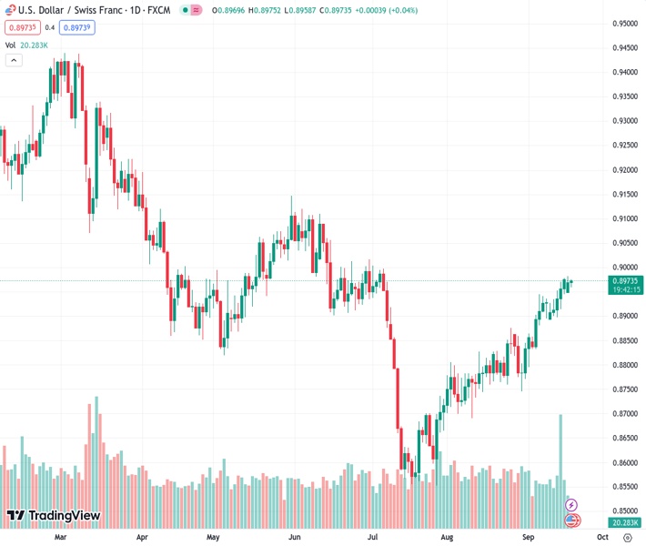 USDCHF currently trading at 0.897 at the time of writing. Pair opened at 0.897 and is trading with a change of 0.0 % .