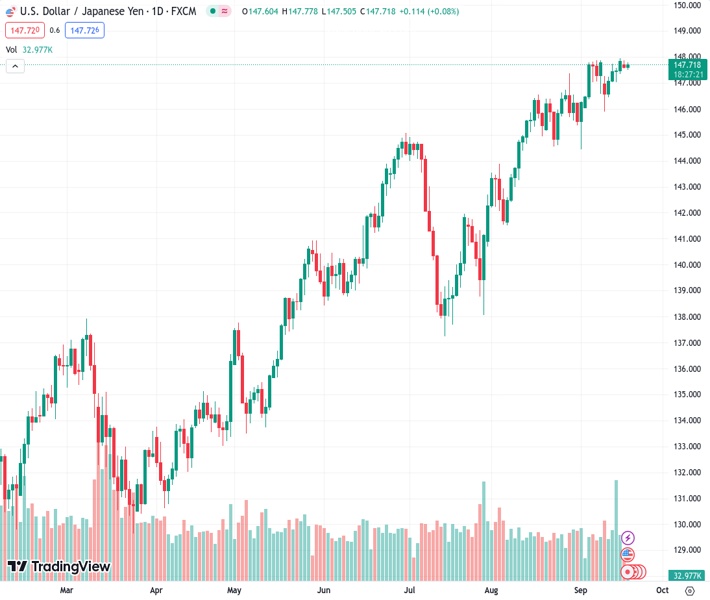 USDJPY currently trading at 147.71 at the time of writing. Pair opened at 147.61 and is trading with a change of 0.07 % .
