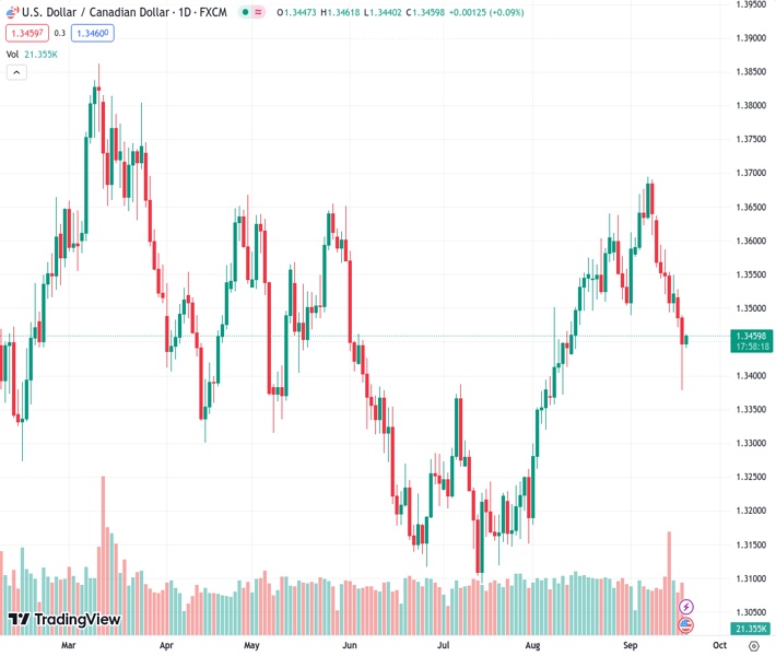 USDCAD currently trading at 1.3457 at the time of writing. Pair opened at 1.3448 and is trading with a change of 0.07 % .
