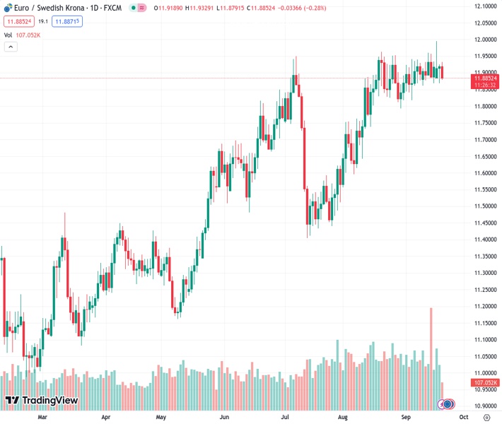 If the Riksbank does not appear to be sufficiently restrictive, the breach of 12 in EURSEK at 11.8847 will only be a matter of formality, according to Commerzbank.