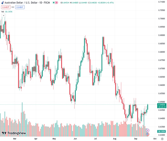 AUDUSD currently trading at 0.6484 at the time of writing. Pair opened at 0.6454 and is trading with a change of 0.46 % .