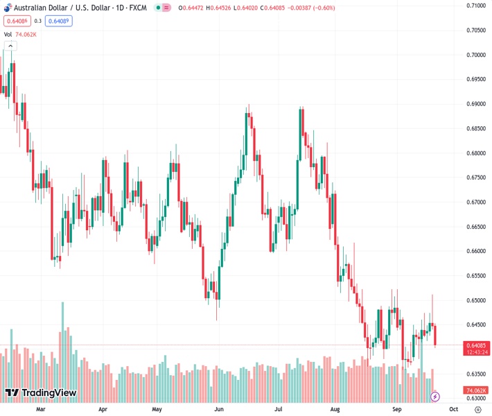 After experiencing losses following the Federal Reserve day, the Australian dollar to US dollar exchange rate, which stands at 0.64093, remains stable above the 0.6400 level.