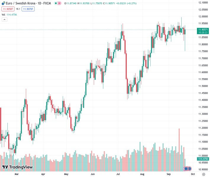 ING believes that it is very much possible for the EURSEK exchange rate to rise to 12.00 after its current value of 11.9003.