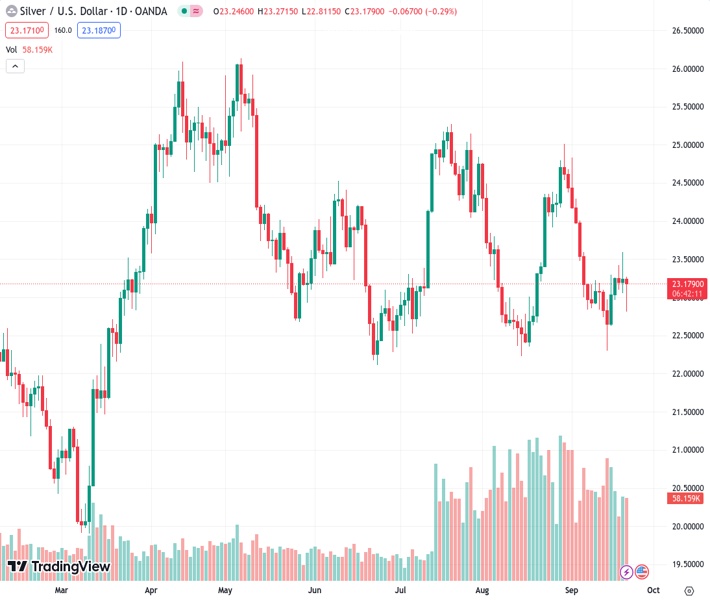 US yields surged to fresh multi-year highs, while Wall Street futures printed new lows after Jobless Claims. Silver bottomed at $22.79 and, as of writing, it is trading at $22.94, down 1.45% for the day. The bearish pressure is likely to persist while it remains below $23.00. The next support level is at $22.60, followed by $22.45. A recovery above the 20-Simple Moving Average on the hourly chart, currently at $23.17, could strengthen the short-term outlook for silver.