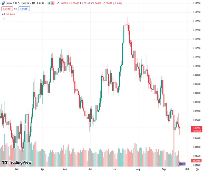 The EUR/USD pair, currently trading at 1.06576, is at risk if it falls below the 1.06 level, according to OCBC.