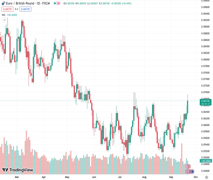 The EURGBP currency pair is currently trading at 0.86733. According to Danske Bank, the relative rates of these two currencies are viewed as having a slightly positive impact, but not significant.