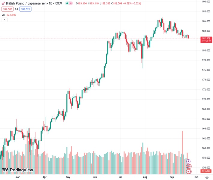 GBPJPY currently trading at 182.48 at the time of writing. Pair opened at 183.12 and is trading with a change of -0.35 % .