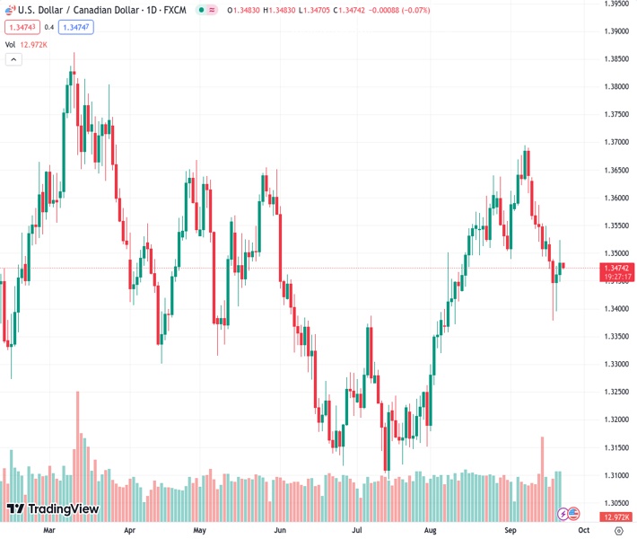 The currency pair USDCAD, currently at 1.34728, is fluctuating around the level of 1.3480 in anticipation of upcoming economic information from both countries.