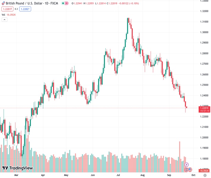 The GBPUSD currency pair, currently valued at 1.22859, continues to face difficulties and is affected by various forces that are exerting downward pressure.