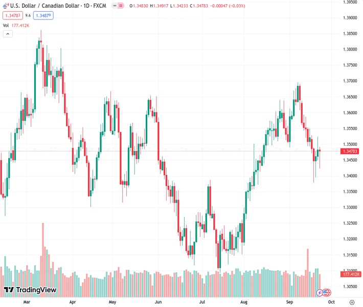 The USD/CAD is set to finish out Friday near where it started, trading just south of 1.3490.