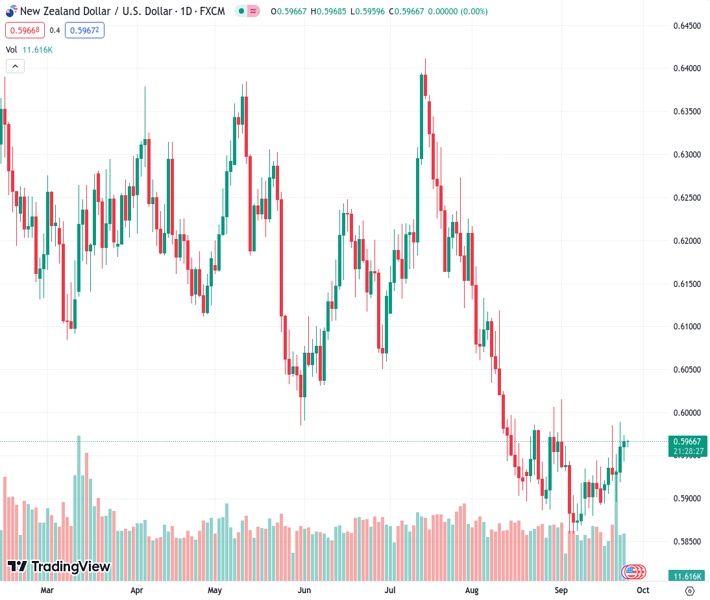 The Kiwi (NZD) has recovered 2% against the US Dollar (USD) from September’s lows near 0.5850, but remains firmly bearish, down over 7% from July’s peak near the 0.6400 handle.