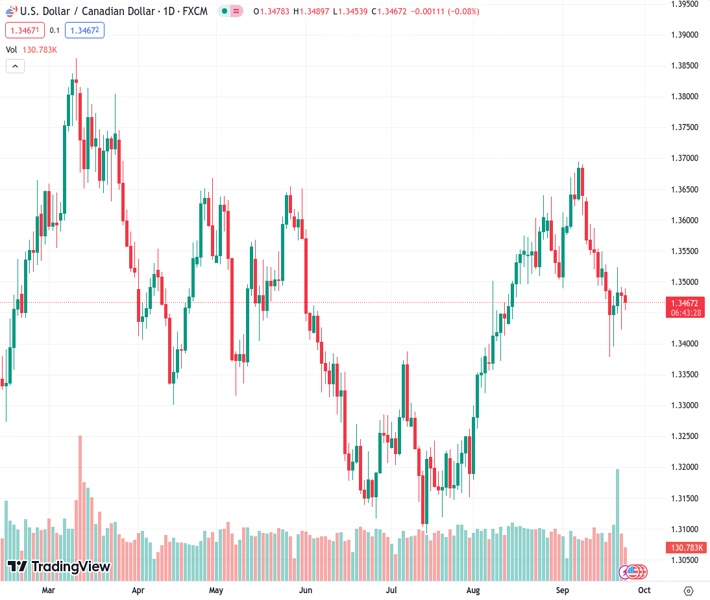 The US dollar to Canadian dollar exchange rate, currently at 1.34721, experiences a surge in buying activity around the 1.3460 mark. This is reinforced by a recent increase in the value of the US dollar.