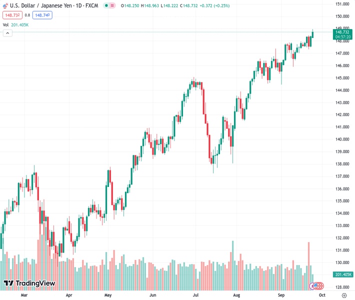 USDJPY currently trading at 148.86 at the time of writing. Pair opened at 148.37 and is trading with a change of 0.33 % .