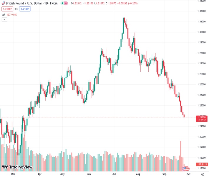 According to Societe Generale, the GBP/USD pair at a rate of 1.21888 is approaching a potential support zone of 1.2170 to 1.2100.