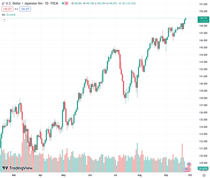 According to UOB, the next predicted target for USDJPY is 149.50, with the current price at 149.127.