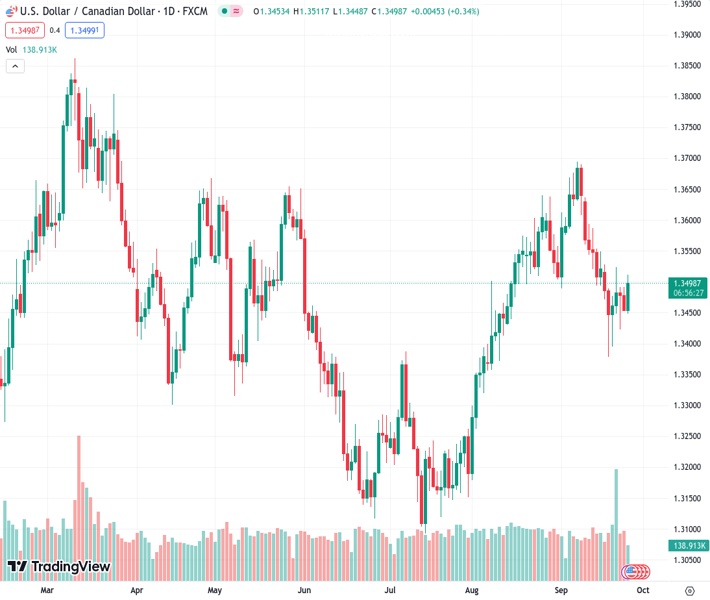 USDCAD currently trading at 1.3504 at the time of writing. Pair opened at 1.3454 and is trading with a change of 0.37 % .